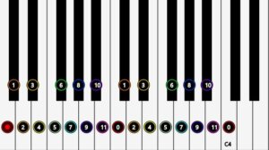 We could conceptually label the 88 keys of a grand piano with the numbers 0 to 87, representing how many semitones higher than the left most key is produced at that label. (The interval each forms with the left-most key). Here are a few of these (and emuso’s “piano” starts at the 16th note of a grand piano)